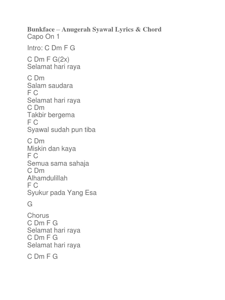 F G C Am. A kau tinggal sendiri D ayahku telah pergi Fm bersama dengan Tuhan E ku kirim sebuah doa D untukmu dalam sujudku. Kord Gitar Lirik Lagu Video Klip Lagu Raya Anuar Zain Ellina - Suasana Hari Raya Rating.
